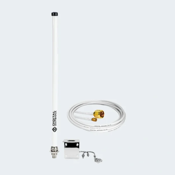 The 1295-75NS is a high-performance omni-directional antenna kit for boosting 5G, 4G, and LTE cellular signals across 600–3800 MHz. Built with rugged stainless steel mounting hardware and a Type N female connector, it delivers reliable long-range connectivity for M2M, IoT, and alarm communicator systems. Compatible with Honeywell, Telguard and other leading cellular devices. Includes 75 ft low-loss DA195 cable.