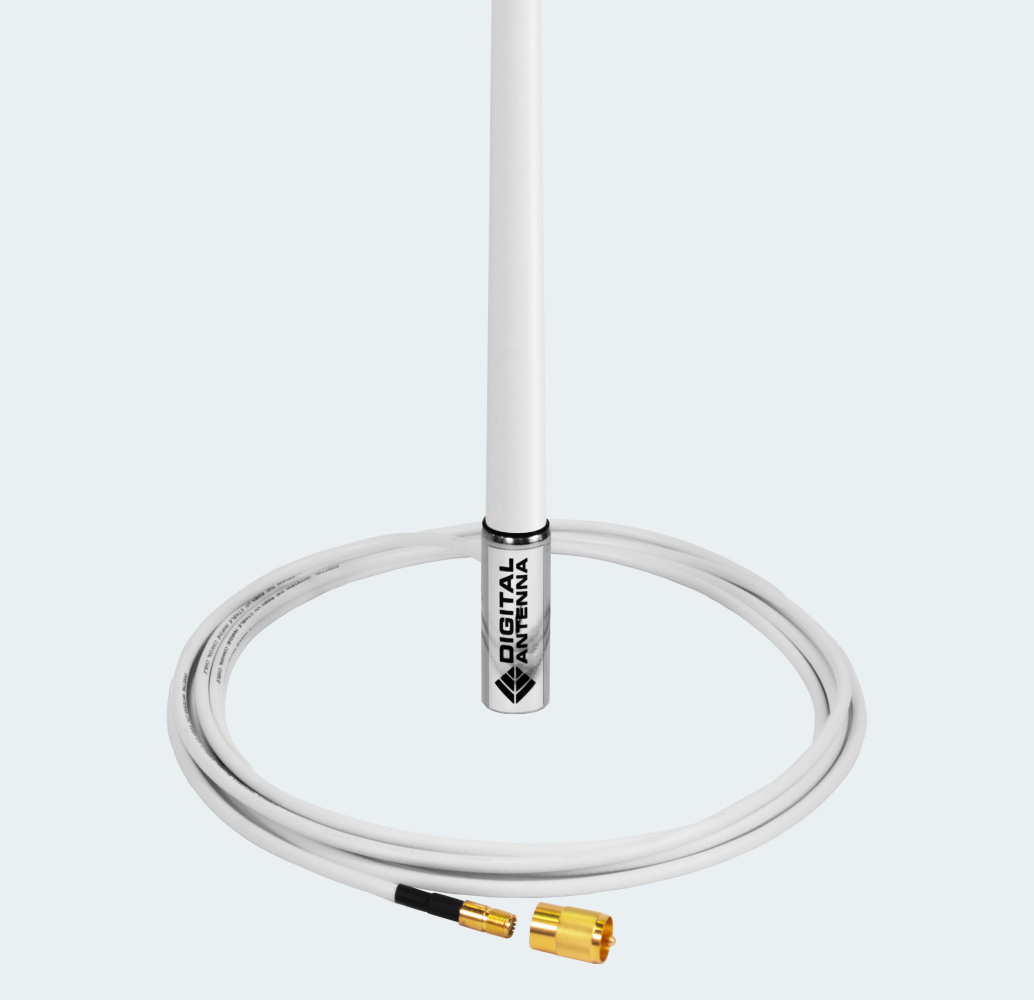 Digital Antenna’s 4′ VHF antenna offers unmatched durability, versatility, and performance for near shore use. Built with 316 stainless steel, a high-gloss UV-resistant finish, and precision brass radiators, it maximizes analog and digital RF signal clarity. A pre-attached mini-connector and PL-259 adapter ensure fast, hassle-free installation.